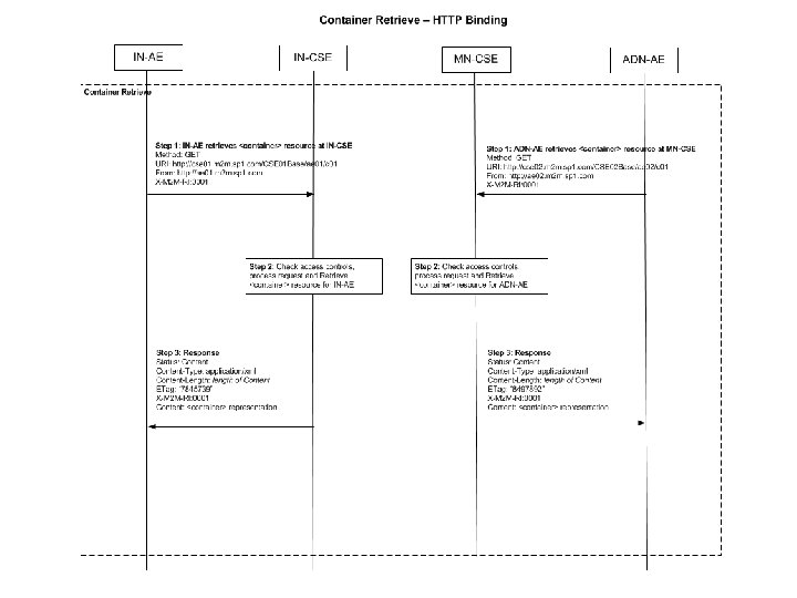 Example: HTTP Binding of Create <remote. CSE> Response: Status: 201 Created X-M 2 M-RI: 0001 Location: http: //cse 01. m 2 m. sp 1. com/CSE 01 Base/remote. CSE 02 Content-Type: application/xml Content-Length: length of Content: <remote. CSE> representation + possible response parameters ETag: “ 7845739” one. M 2 M Response Parameter HTTP Binding Response Code (rs) HTTP Method M 2 M Request Identifier (ri) New one. M 2 M HTTP X-M 2 M-RI Header Field Address of Content Created (not currently defined as a one. M 2 M response parameter) HTTP Location Header Field Content (cn) HTTP Content, Content-Length, Content-Type Header Fields *** Other optional one. M 2 M response parameters not shown can be carried in HTTP Content or possibly one. M 2 M defined HTTP header fields (e. g. to, from, ot, rset, cs, ra)