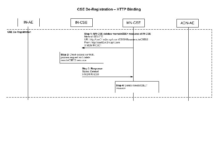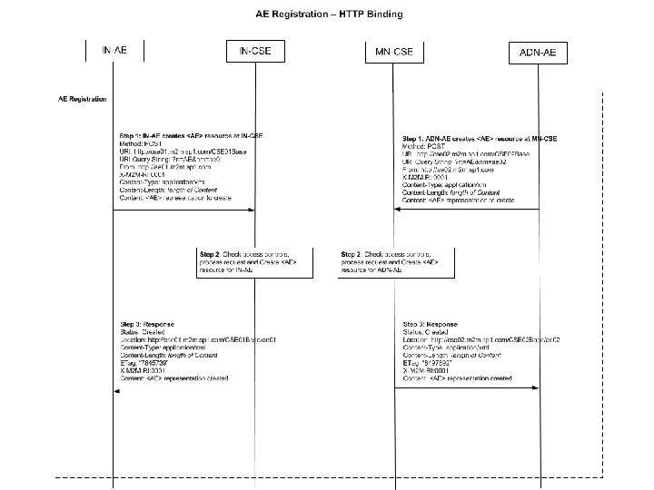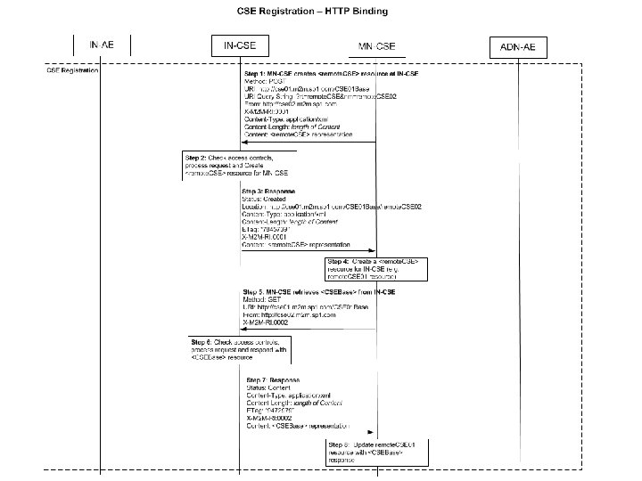 Example: HTTP Binding of Create <remote. CSE> Request: Method: POST URI: http: //cse 01. m 2 m. sp 1. com/CSE 01 Base? rt=remote. CSE&nm=remote. CSE 02 From: http: //cse 02. m 2 m. sp 1. com X-M 2 M-RI: 0001 Content-Type: application/xml Content-Length: length of Content: <remote. CSE> representation one. M 2 M Request Parameter HTTP Binding Operation (op) HTTP Method To (to) HTTP URI Resource Type (rt) HTTP URI Query String Parameter (rt) Name (nm) HTTP URI Query String Parameter (nm) From (fr) HTTP From Header Field M 2 M Request Identifier (ri) New one. M 2 M HTTP X-M 2 M-RI Header Field Content (cn) HTTP Content, Content-Length, Content-Type Header Fields *** Other optional one. M 2 M request parameters not shown can be carried in HTTP URI Query String or in one. M 2 M defined HTTP header fields (e. g. ot, rqet, rset, oet, rp, rc, ec, da, gid, fc, Disrestype)