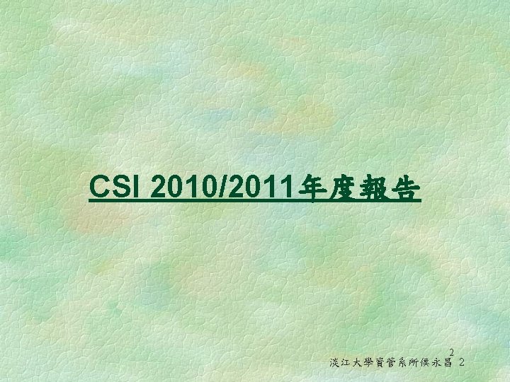 2010/2011年CSI的調查報告 § Basic attacks l 例如︰phishing, port scans, brute force attacks on password-protected accounts, and old-school viruses § Malware attacks l 例如︰malware created from generation and customization toolkits, phishing attacks use real names known to victims in order to improve the credibility of the scam, tools that scan for unpatched systems with known vulnerabilities § Attacks 2. 0 – Advanced Persistent Threat l Attackers are spending more energy customizing malware to make it more effective in targeted attacks 淡江大學資管系所侯永昌 11