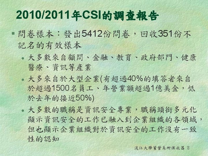 2010/2011年Computer Security Institute 的調查報告 - 15 th annual edition 淡江大學資管系所侯永昌 3