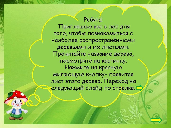 Интернет источники Фон-http: //wallpaperscraft. ru/image/cached_65979_2048 x 1152. jpg Проектор- http: //www. interlink. ru/image/Big/2012017. jpg Берёза- http: //www. playcast. ru/uploads/2015/05/17/13633665. png Лист березы- http: //cs 5. pikabu. ru/images/big_size_comm/2015 -02_1/14229995263803. jpg Осина- https: //www. colourbox. com/preview/4765471 -tree-isolated-on-a-white-background. jpg Лист осины- http: //opengia. ru/resources/6 B 9974 F 354 BCA 3704306 B 0 EF 3 D 66 C 1 AD-G 13 B 5086 B 9974 F 354 BCA 3704306 B 0 EF 3 D 66 C 1 AD-3 -1397450352/repr-0. jpg Рябина- http: //chelno 4 ok. do. am/derevo-ryabina. png Лист рябины- http: //www. playcast. ru/uploads/2014/07/02/9112213. png Дуб- http: //abload. de/img/agaclar_png_nisanboarm 2 l 6 j. png Лист дуба- http: //detvoraonline. ru/_mod_files/ce_images/listya/list 12. png Клён- https: //cdn. vectorstock. com/i/thumb-large/15/44/951544. jpg Лист клёна- https: //im 2 -tub-ru. yandex. net/i? id=2 ce 4 b 735 ae 9 e 5 a 26 de 0 de 539 c 32 ea 1 fa&n=33&h=215&w=212 Каштан- http: //thumbs. dreamstime. com/thumb_1942/19429953. jpg Лист каштана-http: //img 0. liveinternet. ru/images/attach/c/8/125/188/125188520_0_136 f 94_6 e 753 e 92_or. png Ива- http: //photos 1. blogger. com/blogger/919/2118/1600/willow_HUGE. jpg Лист ивы- http: //img-fotki. yandex. ru/get/5606/lady-annadu. ca/0_6 a 8 a 0_f 15 be 4 fb_L. jpg Тополь - http: //t 1. ftcdn. net/jpg/00/55/90/54/160_F_55905495_w. IX 9 Kb 5 Oweqb. TByq. BBm. TE 282 o. Juv. Jwl 5. jpg Лист тополя Ясень- https: //fbcdn-sphotos-g-a. akamaihd. net/hphotos-ak-xap 1/t 31. 08/s 720 x 720/10866238_10153126957117383_2712458360199113118_o. jpg Лист ясеня- http: //0. s 3. envato. com/files/64505594/070813_4996. jpg Липа- http: //img 1. liveinternet. ru/images/attach/c/2/74/169/74169389_11. png Лист липы- http: //lisyonok. ucoz. ru/_ld/0/32220. png Лесовичок - http: //www. lesovichok 27. ru/images/ca 03446 eca 1 c. png Автор приема «Мультимедиапроектор» Жакулина И. В.