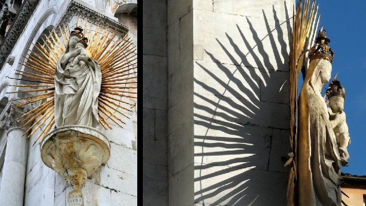 On the lower right corner of the façade of San Michele in foro church is a statue (1480) of the Madonna salutis portus, sculpted by Matteo Civitali to celebrate the end of the 1476 plague