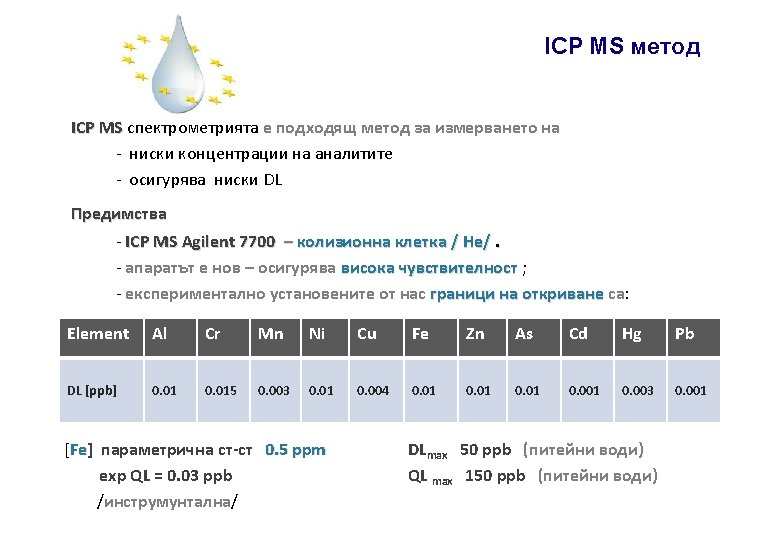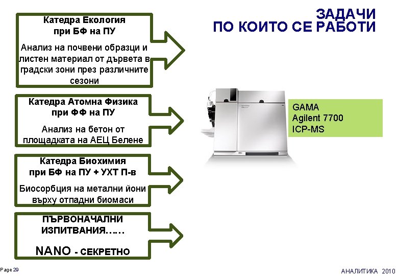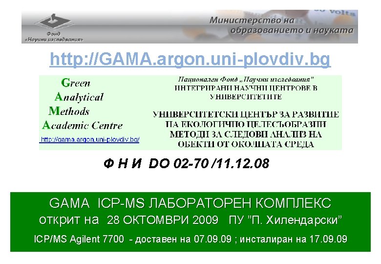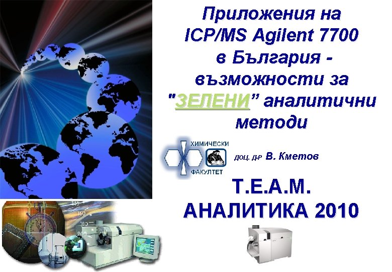 Cloud Point Extraction Екстракция при температура на коагулация surfactant = TX-100 = APDC ligands = DDTP = 2 -MBT Zn, Cu, Pb, Cd, Mn Rh , Pd , Pt = KI, promoters = Sn. Cl 2 = Pd acids sample m analyte solution PF Cx E = HP = MW = US CM VM ICP-MS GAMA Agilent 7700 АНАЛИТИКА 2010