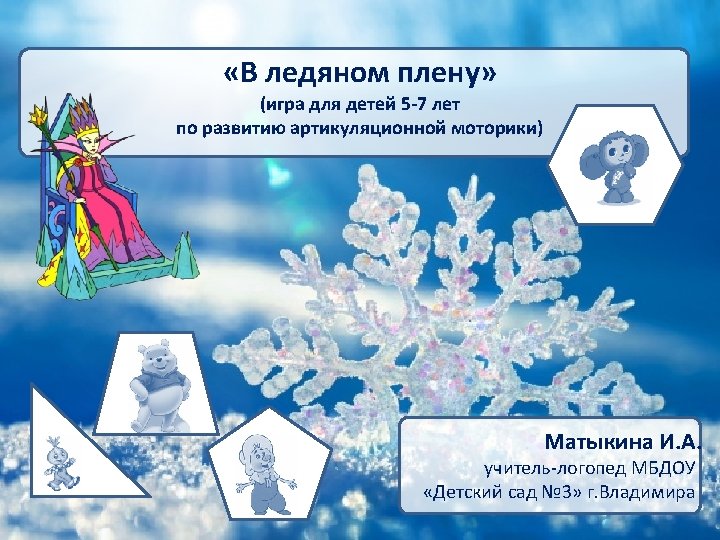 Источники картинок Фон со снежинкой http: //www. gismeteo. ru/static/news/img/src/3514/586 e 868 a. jpg Снежная королева, дюймовочка, русалка http: //i. allday. ru/uploads/posts/2009 -05/1241760366_geroi_skazok_andersena-10 -kopiya. jpg Колобок http: //s 017. radikal. ru/i 416/1112/76/d 3504 cb 49 ddf. jpg Чиполлино http: //logopsi. ucoz. com/_ph/88/741955153. png Емеля http: //img 0. liveinternet. ru/images/attach/c/4/81/625/81625616_emelya. png Винни Пух http: //simpotno. ru/wp-content/uploads/2009/07/ddddd. jpg Гном http: //www. coollady. ru/puc/5/GS/12_1. jpg Чебурашка http: //mistergid. ru/image/upload/2011 -08 -07/330026694634_05 -oct. -23 -18. 38. gif Кот в сапогах https: //st. fl. ru/users/colibry 6/upload/f_500 a 48 d 939 e 8 d. jpg Леопольд http: //metod-sunduchok. ucoz. ru/_ld/1/85139821. gif Карлсон https: //encrypted-tbn 0. gstatic. com/images? q=tbn: ANd 9 Gc. Ql. Uxo. AAcgn. CYIybcj. KBOb. Z 0 QPs 69 Ga. YUie. PMy. Zc. Sm. Yzdb. Ewd. J-Dg Золушка http: //i. allday. ru/uploads/posts/2009 -05/1241671089_geroi_skazok_perro-10 -kopiya. jpg Фунтик http: //www. funtik 56. ru/_img/img_funtik. png Лиса http: //ic. pics. livejournal. com/romansheyn/28970747/10849_original. jpg Часики http: //pchelka-nn. ru/components/com_virtuemart/shop_image/product/_________5139 ea 8040849. jpg Иголка http: //astrologo. ru/imason/Igolka. jpg Качели http: //redkit 22. ru/d/433237/d/kacheli. png Футбол http: //900 igr. net/datai/chelovek/Sport-2. files/0013 -021 -FUTBOL-kogda-ljudi-begajut-po-spetsialnomu-polju-pinaja-mjach-nogami. png Щетка http: //cutlife. ru/wp-content/uploads/2010/11/kak-vybrat-zubnuyu-shhetku. jpg Расческа http: //mtdata. ru/u 29/photo. AF 3 A/20785833345 -0/original. jpg Лопата http: //shop-mu. ru/image/cache/data/detski%20 mir/igrushki%20 obshie/pesochnie%20 nabori/Новок. зд%20 пласт. %20 Лопатка%20 детская%20 АЕ 55 -500 x 500. jpg Варенье https: //encrypted-tbn 0. gstatic. com/images? q=tbn: ANd 9 Gc. Tno 9 v. R 9 Kup. Mb. GI 76 ABHid 3 No 6 f. PNUGUo 1 ANVPb. AH 206 o 9 Rp. HQb. Qg Чашка https: //encrypted-tbn 2. gstatic. com/images? q=tbn: ANd 9 Gc. Qhq. KFgkbxd. E 3 k. Z 8 XS_Yfg. XJ 4 jx. Jf_0 h 7 MPl. Cv 80 BWq 6 ztyv. Y 7 o Барабан http: //www. veselinka-kazan. ru/published/publicdata/VESELINKWA/attachments/SC/products_pictures/baraban_enl. jpg Лошадка https: //festival. 1 september. ru/articles/584044/img 7. jpg Гриб http: //allforchildren. ru/rebus/img/0 -16. gif Шляпа http: //2 usb. ru/wp-content/uploads/2010/04/hat. jpg Музыкальное сопровождение: «Сказки зимнего леса» (муз. П. Ермалаев)
