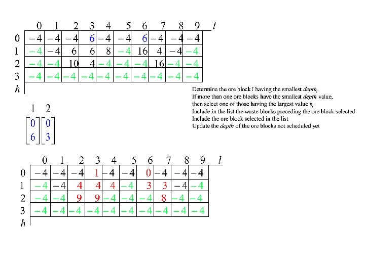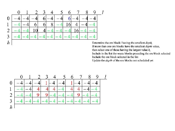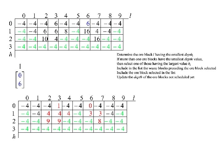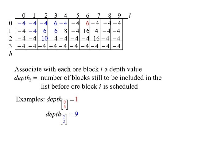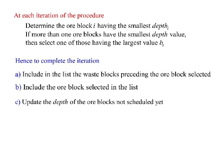 Priority of a block • Consider its net value bi and impact on the extraction of other blocks in future periods • Block lookahead value (Tolwinski and Underwood) determined by referring to the spanning cone SCi of block i