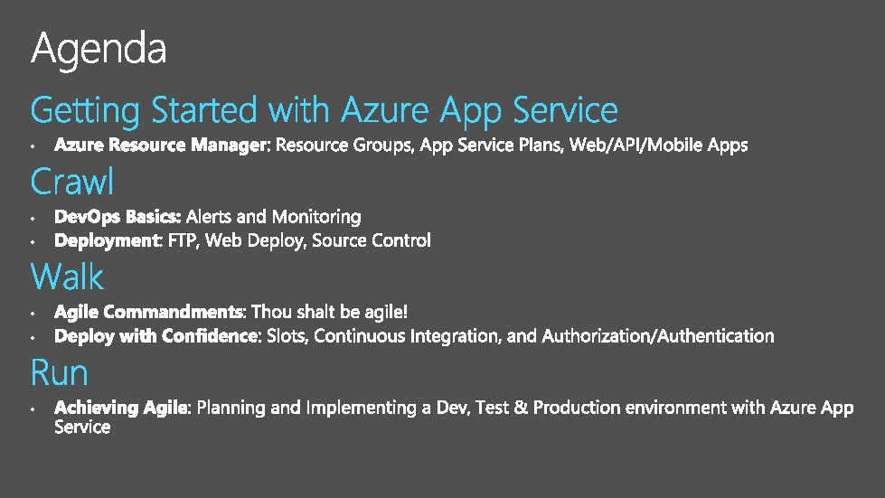 • • ARM Client Resource Explorer Deploy to Azure Daa. S Source Control using Azure Portal Authentication/Authorization Planning a Scalable End-to-End Multi-Tier Application on Microsoft Azure Web Sites