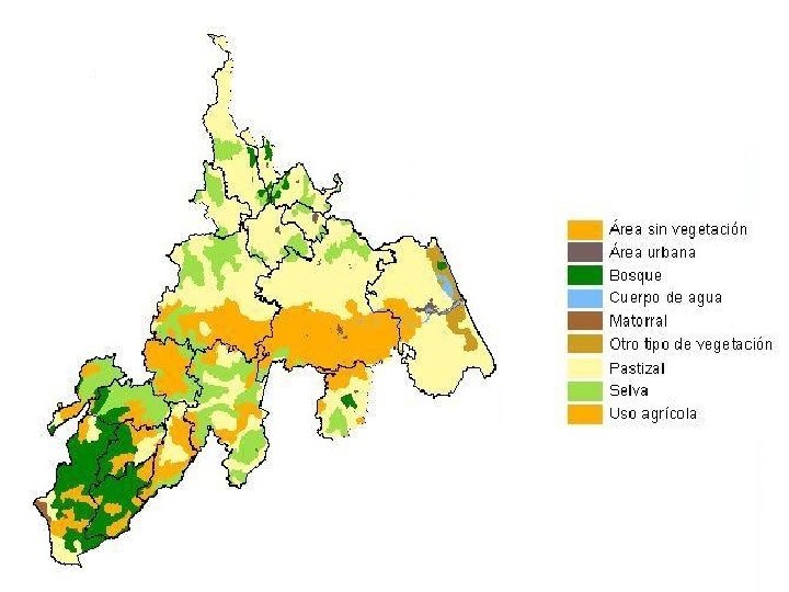 USO DEL SUELO En ésta región predominan las actividades agropecuarias ya que del total del territorio alrededor del 35% es utilizado como pastizal y el 33% es destinado al sector agrícola. Sin embargo, cuenta con una importante área de selva que representa aproximadamente el 21%, el tercer territorio más grande de selva en el Estado de Veracruz.