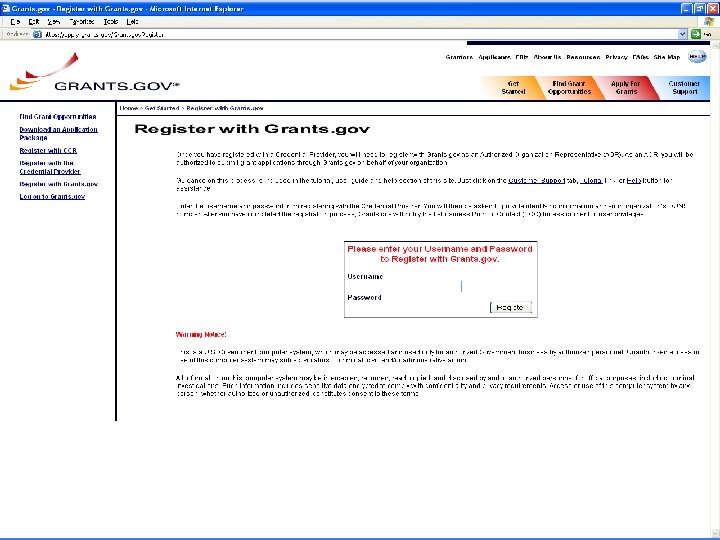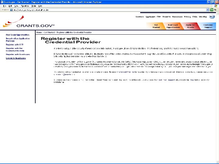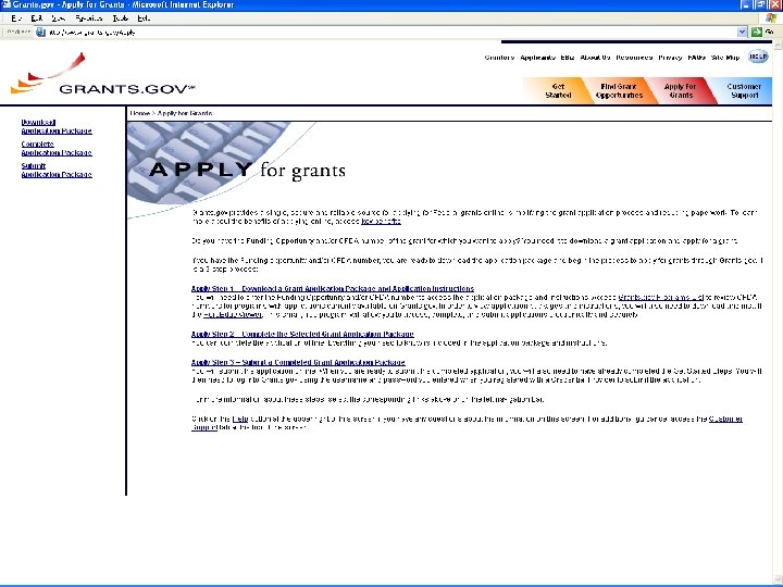 Next Steps for Applicants/Grantees • Install Pur. Edge Viewer • Complete Grants. gov registration process • Inform business partners about Grants. gov and electronic submissions • Submit 2005 applications via Grants. gov