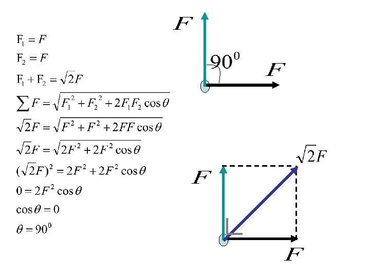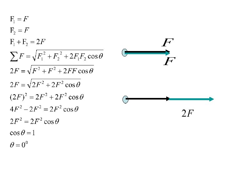 Contoh Soal 1. Dua gaya memiliki nilai yang sama dengan F. Berapa sudut antara dua vektor jika jumlahnya bernilai a) 2 F b) 2 F c) nol Buatlah sketsa ketiganya!