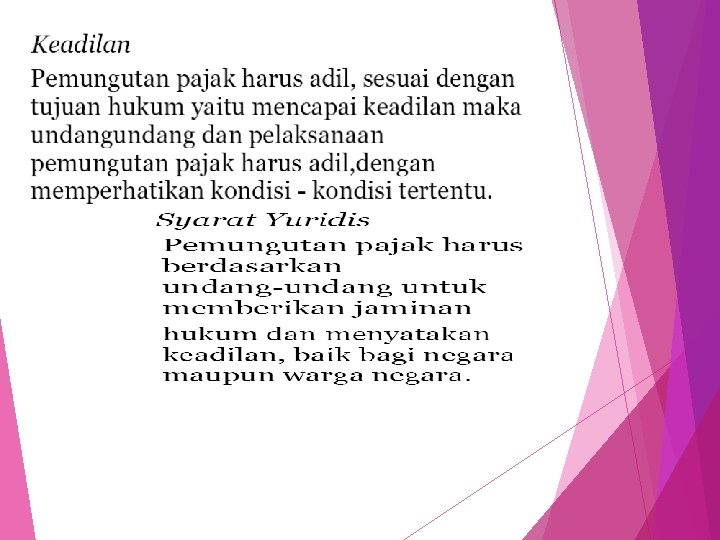 Syarat Pemungutan Pajak Syarat keadilan § Umum & merata Syarat yuridis Hukum perundangan § Hak & kewajiban WP §