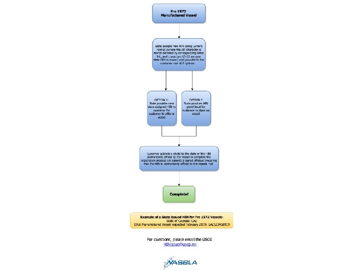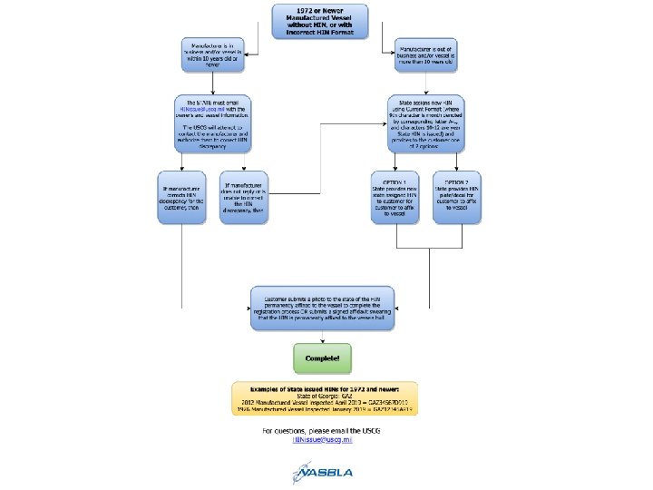 HIN Assignment Flow Charts The following three slides can be used as a quick reference guide on issuing HINs. You can find originals on the NASBLA Website Nasbla. org under Advocacy – Committees – Vessel Identification, Registration and Titling – Charges, Products & Reports For all HIN related questions, please email HINissue@uscg. mil Last Updated 9/9/2021