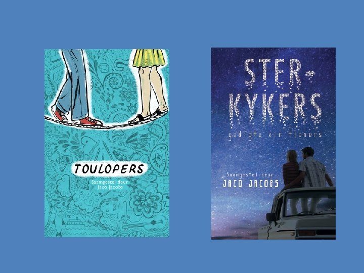 Hulpbronne • Prof Johan Anker - Onderwêreld as voorbeeld van die gesag- en magstryd in die jeugroman. • You. Tube-video’s – Fanie. Viljoen. Flieks • Dr Alet Mihalik se video op Litnet • Voorlesing deur Anrich Herbst – Audible (Amazon)