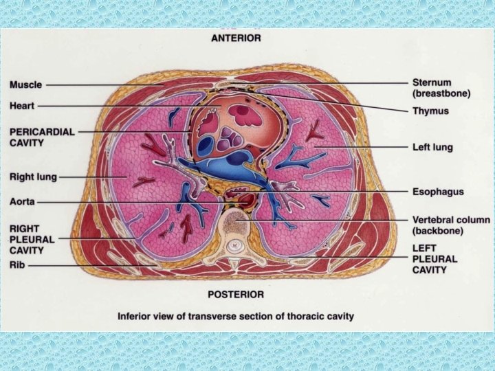 Ventral Body Cavity • Located near the ventral (anterior) aspect of the body. • Subdivisions – Thoracic cavity – Abdominopelvic cavity • Diaphragm • Viscera