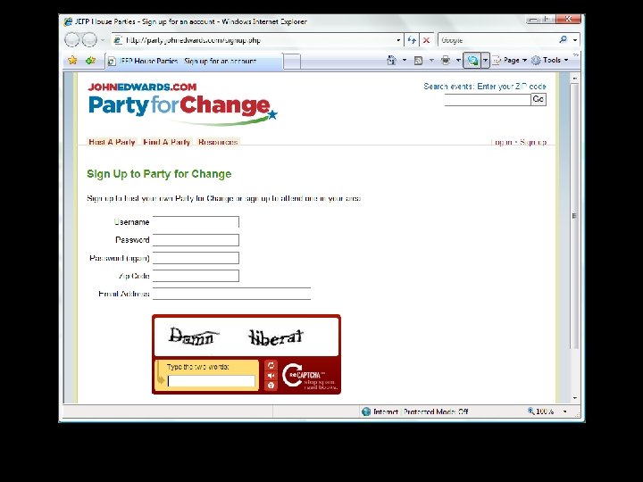 CAPTCHA Sweat Shops Spam companies hire humans to solve CAPTCHAs all day long $2. 50 per hour for each human 720 captchas per hour per human 1/3 cent per account