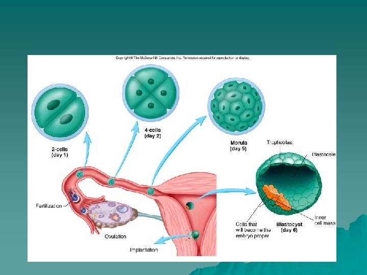I. Prenatal Development - Changes that occur prior to birth. A. _____ - union of oocyte (egg) with sperm. Only _____ sperm can fertilization an _______. ___ days prior to ovulation to ___ day afterwards. Sperm uses _____ (enzyme), which is released from the head (____), to penetrate the oocyte. Oocyte two layers _______ - outer layer _______ - inner layer