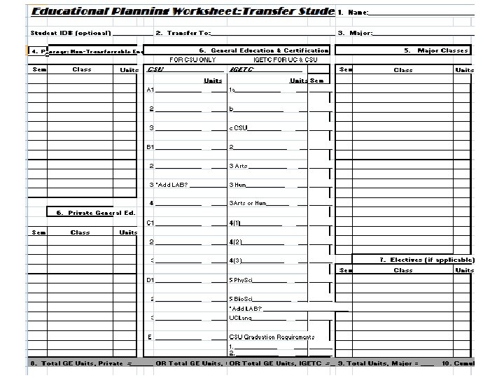 Human Development: Focus on “College Knowledge” � 1. Key cognitive strategies, including analysis, interpretation, precision, problem-solving and reasoning. � 2. Specific types of content knowledge, most importantly the ability to read and write critically. � 3. Attitudes and behavioral attributes, including study skills, time management, awareness of one’s performance, persistence, and the ability to utilize study groups. � 4. Contextual knowledge about college resources and expectations and how to successfully adjust to navigating the college environment. � David Conley, Educational Policy Improvement Center, University of Oregon. Cited in California Community Colleges Student Success Task Force.