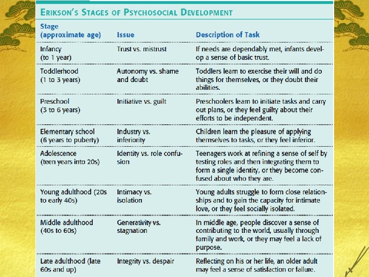 Integrity v. Despair £ Look back on life. £ Was my life meaningful or do I have regret?