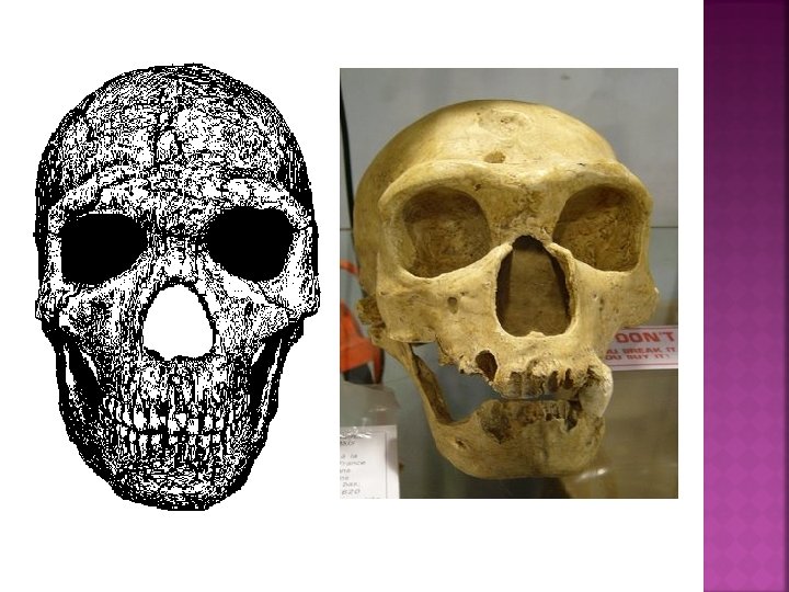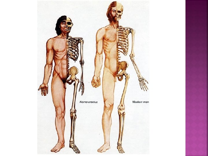 300, 000 -1. 5 million years ago Eugene Dubois discovered homo erectus on the island of Java At first he thought it was an “upright ape” but later changed because of human similarities Remains have been found in China (called Peking), Tanzania and Algeria Fair sized brain about capacity 750 - 1225 cm 3 This species learned to use fire for warmth, how to co-operate with others to hunt animals and how to design stone tools such as axes