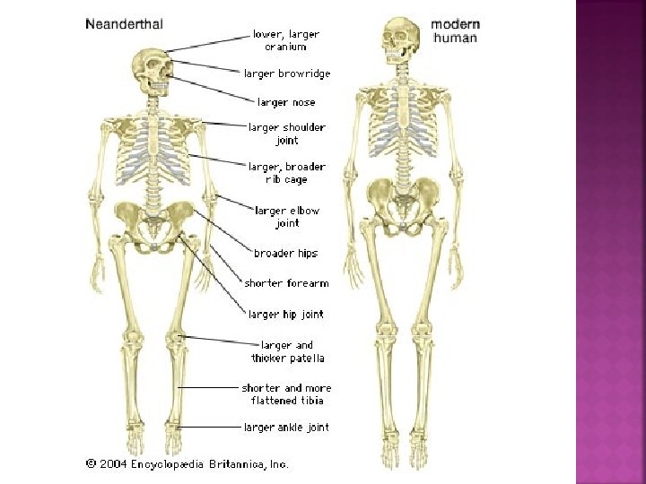 35, 000 – 85, 000 years ago Discovered accidentally by quarry workers in Germany 1856 Thomas Huxley used the discovery to support Charles Darwin’s Theories Neanderthalis has a similar brain to ours a capacity 1400 - 1600 cm 3 It may have been possible for it communicate through speech Practiced many social behaviours such as burying its dead in graves Produced a wide variety of tools such as knifes, scrapers and chisels