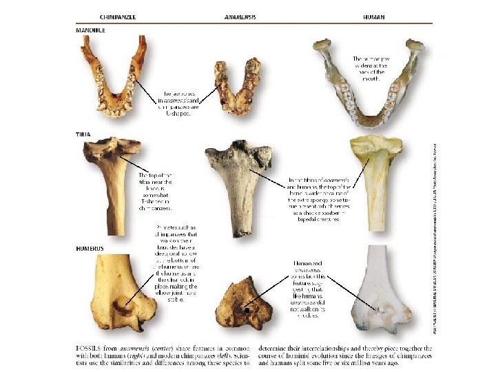 Ardipithecus: Earliest True Hominid? • Between 4. 5 and 5. 5 mya from the Middle Awash valley site • Remains very fragmentary: limb bones, toe bones, jaws & teeth • Straight toe bones suggest it may have been bipedal • Ardipithecus & Orrorin are candidates for last common ancestor of chimps & humans • Each have mosaic of features seen in later hominids & modern chimpanzee IT MAY WELL BE THAT THE LAST COMMON ANCESTOR OF CHIMPS AND PEOPLE HAD A MIX OF FEATURES: SOME RETAINED IN HUMANS, OTHERS RETAINED IN CHIMPS!