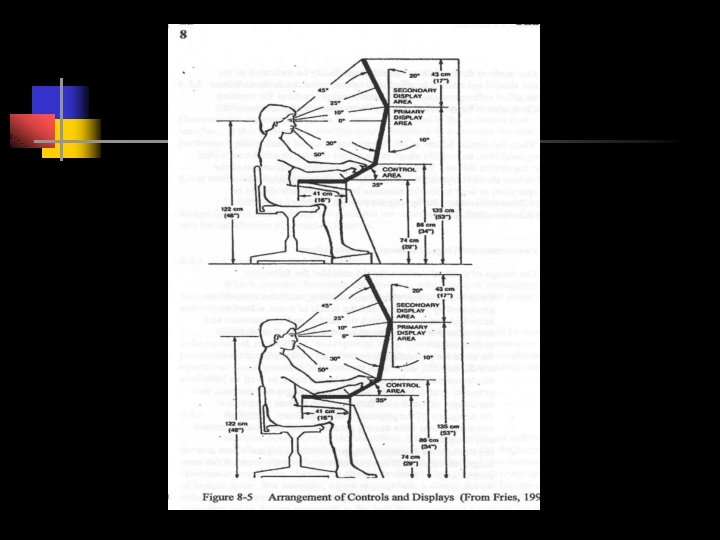 Anthropometry n n n Science of measuring human body and its parts and functional capacities Range of values: 5 th percentile female to 95 th percentile male Functional dimensions Psychological elements Workstation design considerations