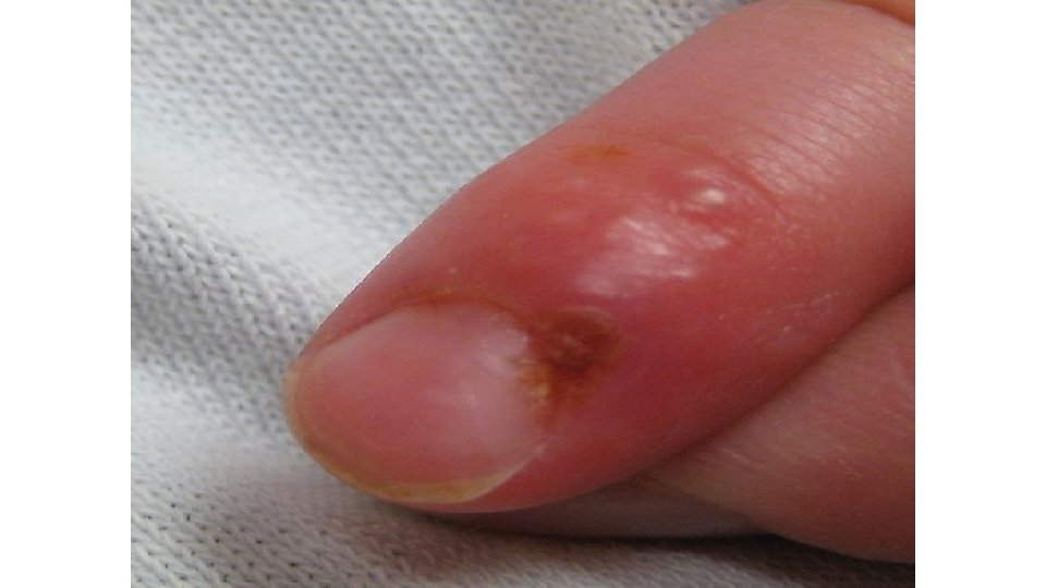 HERPETIC WHITLOW • A lesion (whitlow) on a finger or thumb caused by the herpes simplex virus. • HSV-1 or HSV-2. • HSV-1 whitlow is often contracted by health care workers dental workers and medical workers exposed to oral secretions.