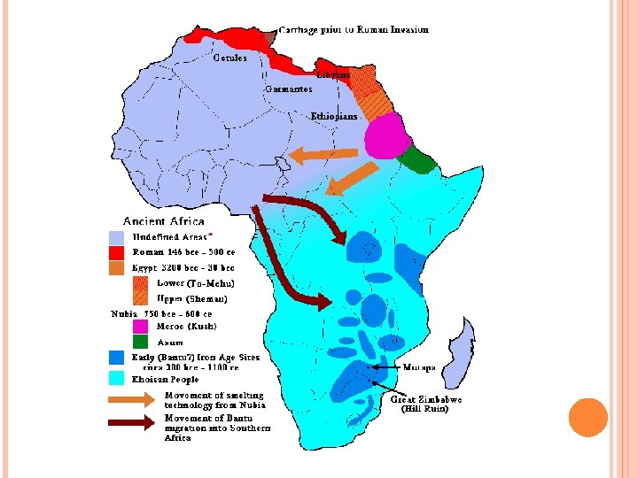 Proximity to Eurasia – allowed parts of Africa to interact with Eurasian civilizations -North Africa was incorporated into the Roman Empire and used to produce wheat and olives -Christianity spread widely, giving rise to one of the early Church’s most important theologians, Saint Augustine (354 -430 CE) -Christian faith found an even more permanent foothold in the lands known today as Ethiopia Arabia was another point of contact with the larger world for African peoples -the arrival of the domesticated camel, probably from Arabia, generated a nomadic pastoral way of life among some of the Berber peoples