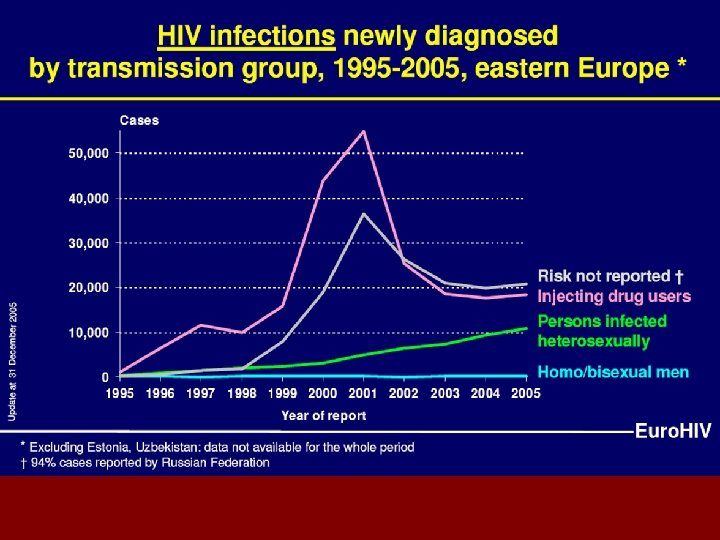 HIV in Europe • Slowly increasing prevalence in Western Europe • Quickly increasing prevalence in Eastern Europe