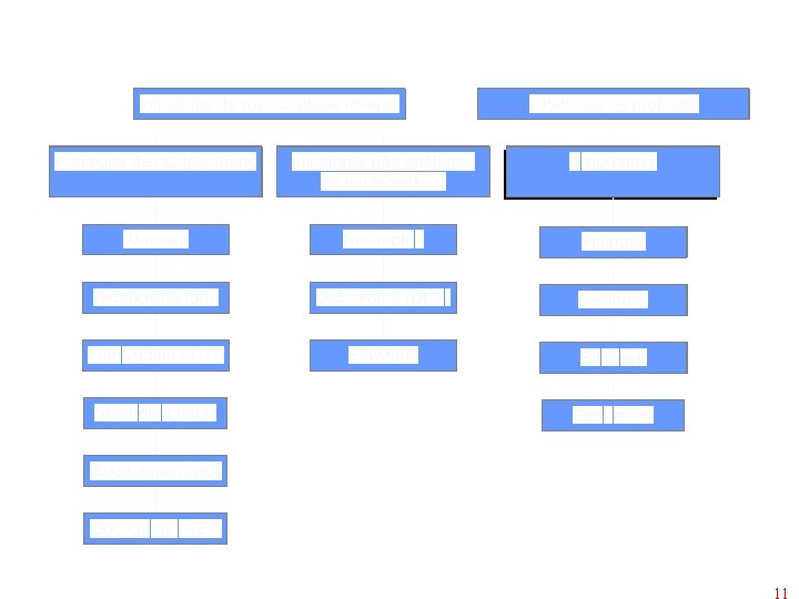 Nucleosídeos inibidores da transcriptase reversa • Drogas utilizadas contra retrovirus (HIV) • Uso prolonga e melhora a qualidade de vida • Não cura a infecção • Zidovudine (AZT), Abacavir (ABC) • Lamivudine (3 TC), Didanosine (ddl) • Zalcitabine (dd. C), Stavudine (d 4 T) 100