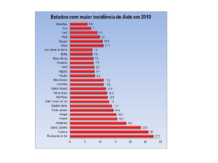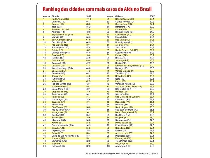 AIDS no Brasil – resumo • Epidemia concentrada: anos 80 => principalmente os usuários de drogas injetáveis, gays e outros HSH, transfusionados e receptores de produtos derivados de sangue • Anos 80 e início dos 90 => transmissão heterossexual => principal via de transmissão do HIV • Esta vem apresentando maior tendência de crescimento em anos recentes, com participação das mulheres na dinâmica da epidemia. • Além disso: • Nos últimos anos => interiorização e pauperização da epidemia => Passou dos estratos sociais de maior escolaridade para os menos escolarizados. Fonte: http: //www. aids. gov. br/data/Pages/LUMISD 3352823 PTBRIE. htm