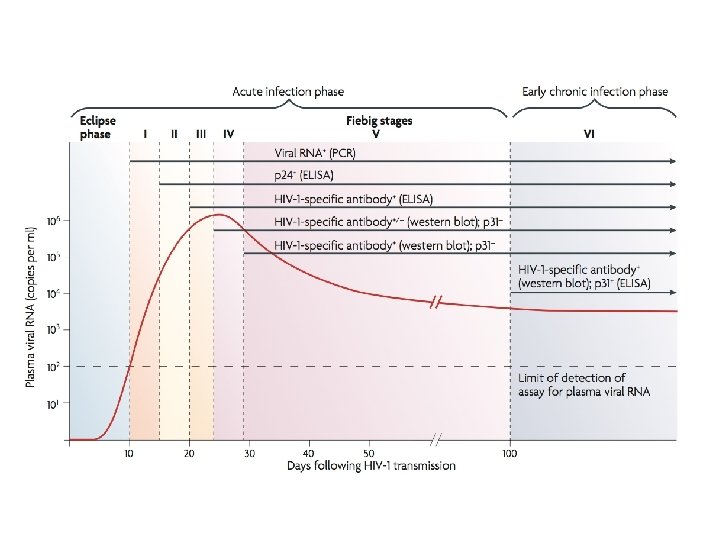Patogenia – HIV • Carga viral na fase aguda: muitos milhões de cópias de RNA/m. L sangue • Progressores rápidos: tipicamente desenvolvem AIDS em 3 -5 anos