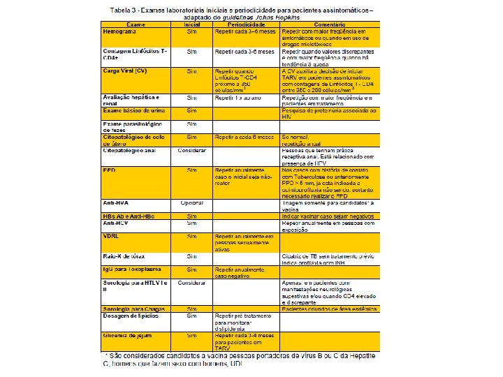 Tratamento - HIV positivo: monitorar a carga viral antes de tratar. - Monitorar o nível de linfócitos T CD 4. - Se CD 4 baixar de 350 iniciar o tratamento - O objetivo do tratamento é reduzir o nível de HIV no paciente