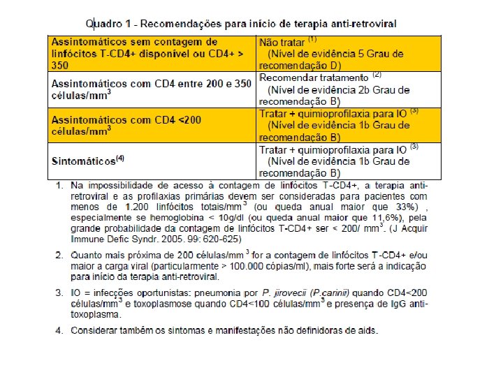 HIV e Tuberculose Fonte: Recomendações para terapia anti-retroviral em adultos e adolescentes infectados pelo HIV - 2007/2008 - Documento preliminar 4: http: //bvsms. saude. gov. br/bvs/publicacoes/recomendacao_terapia. pdf