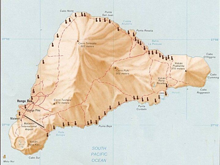 Archeology n Radio Carbon dates estimate first human arrival around 500 CE, also supported by linguistic research. n Garbage heaps have shown that early Easter Islanders (people of Rapa Nui) subsisted on fish, seabirds, and a large quantity of dolphin.