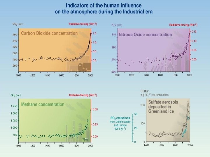 Global Warming 1. We add >8 billion tons of CO 2 to the atmosphere every year. 2. Only 1% of this CO 2 can be recycled by the entire photosynthetic capacity of the Earth in a year. 3. Most methane production is due to man-related activities. 4. Atmospheric temperatures, previously constant for over a millennium, are much higher than in 1980. 5. There has been no increase in solar yield. 6. Human activities are responsible for this global warming.