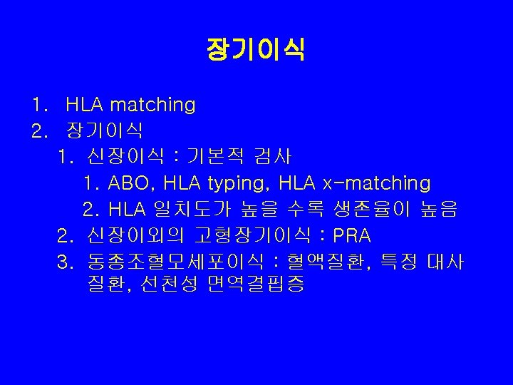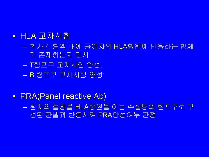 HLA typing 1. 혈청학적 검사 – 2. 미세림프구 독성검사(microlymphocytotoxicity test) 분자생물학적 검사 – – – Reverse SSO(sequence specific oligonucleotide) hybridization Sequence specific primer method Direct sequencing 3. 세포학적 검사 • • 혼합 림프구 배양검사( one way, two way) HTC (homozygous typing cell) typing