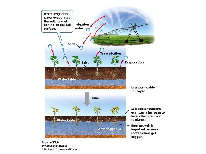 IRRIGATION Improved techniques improved crop yields � Can deplete groundwater and cause saltwater intrusion � Waterlogging � Soil remains underwater � Deprives roots of oxygen � � Salinization � Salts in water and fertilizer are left behind after evaporation