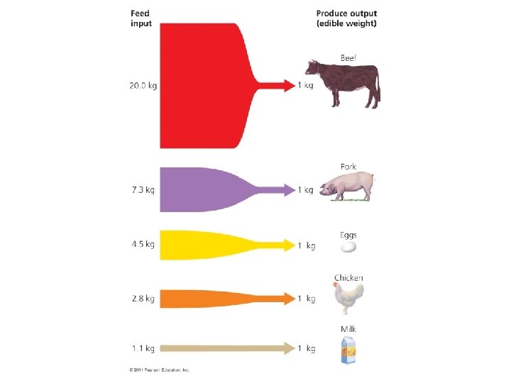 HUMAN DIET � Meat Second largest component of our diet � Beef, pork, sheep, goat, chicken, turkey, duck � Requires more land resources to produce than grain �