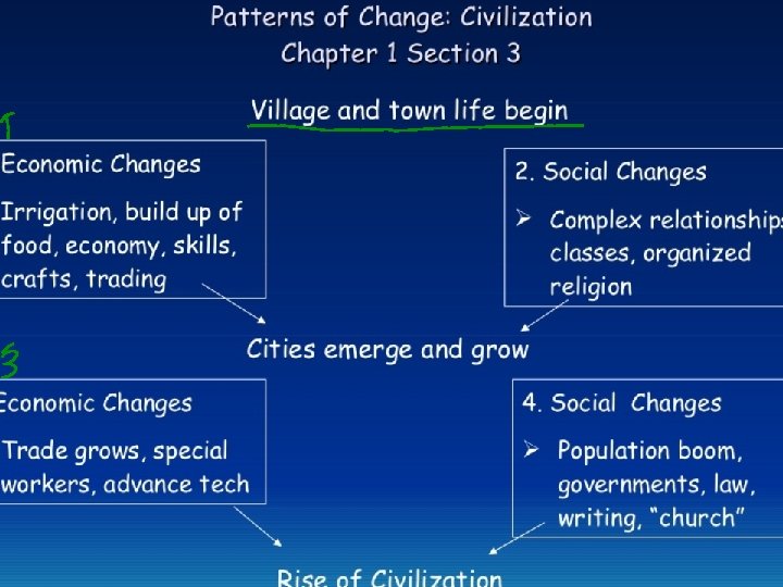 THE EFFECTS OF THE AGRICULTURAL REVOLUTION? MAN learns to WORK TOGETHER creates surplus of food Develop LEADERS & RULES OF LAW to settle disputes CITIES DEVELOP to trade the surplus of food A DIVISION OF LABOR evolves; everyone cannot be a farmer A WRITING SYSTEM is created to keep track of items bought & sold As government services grow, the government must collect TAXES