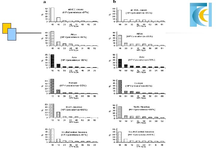 Worldwide HPV Types in Cervical Cancer: The Impact of the Vaccine • Several meta-analyses published on HPV types from all over the world (Munoz, Clifford and finally Smith, 2007) to predict the impact of the new HPV vaccines. • And to study regional variation for possible future modification. • Smith’s meta-analysis: Int. J. Cancer, 2007