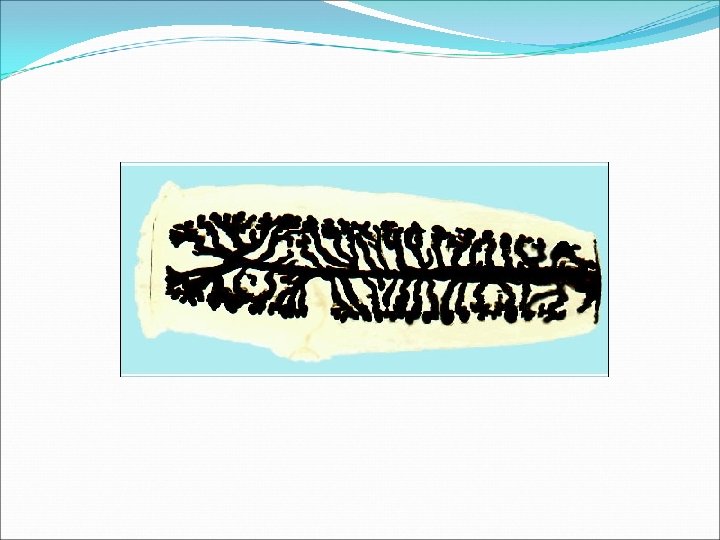 Gravid segment India ink technique Note : More than 15 lateral uterine branches (one side).