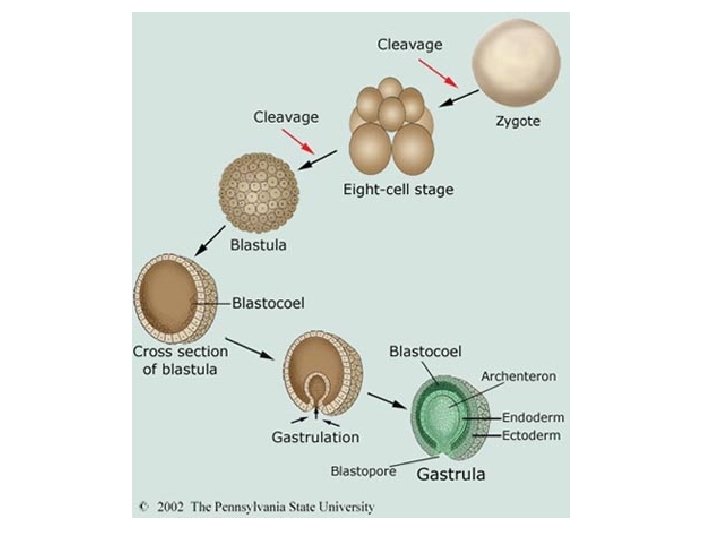 Embryonic Development Two Types of Development: � 1. External Development – the new zygote develops outside the female’s body. Examples: birds, reptiles, turtles, chickens � 2. Internal Development – the new zygote develops inside the mother’s body until it is ready to be born. Examples: humans, mammals