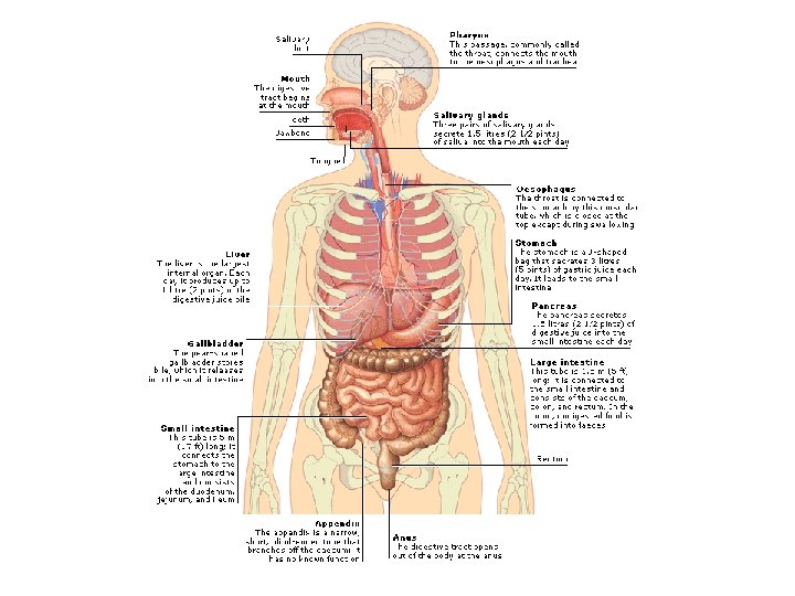 Digestive System Function: break down foods so they’re small enough to diffuse into our blood then cells Composed of the oral cavity, esophagus, stomach, small intestine, large intestine, rectum, anus, and liver