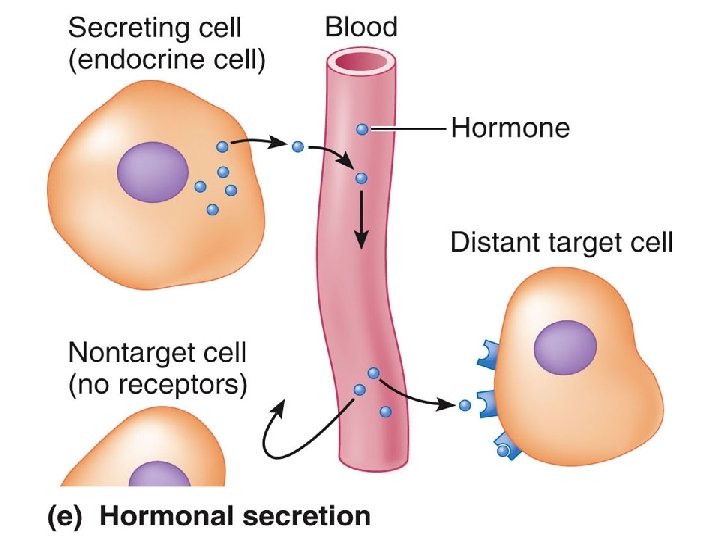 Chemical Messengers – Hormones • Long-range messengers • Secreted into blood by endocrine glands in response to appropriate signal • Exert effect on target cells some distance away from release site – Neurohormones • Hormones released into blood by neurosecretory neurons • Distributed through blood to distant target cells