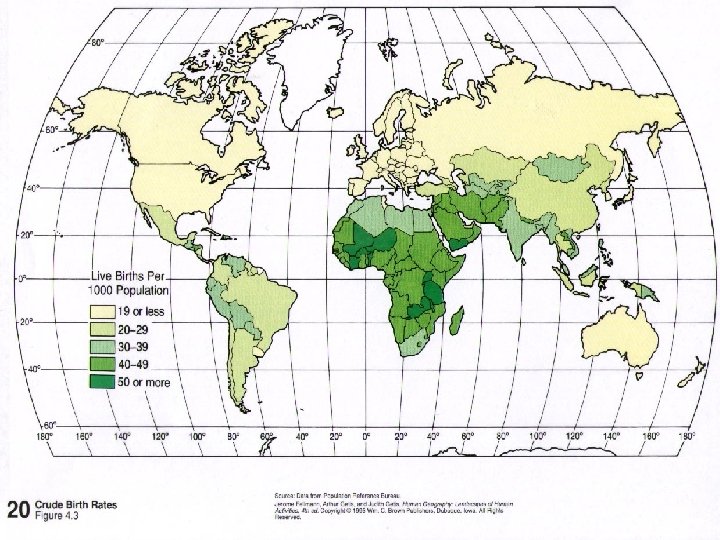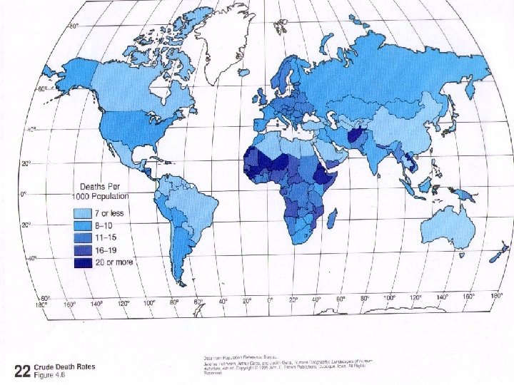 Rates of Global Pop. Change use: International Data Base http: //www. census. gov/ipc/www/idbnew. html, then Online Demographic Aggregation • CBR (crude birth rate) = # births / 1000 population 1990: 24 now: 20. 6 • CDR (crude death rate) = # deaths / 1000 population 1990: 9 now: 8. 8 • Growth Rate = (b + i) – (d + e) 1990: 1. 5% – growth rates have come down now: 1. 19%