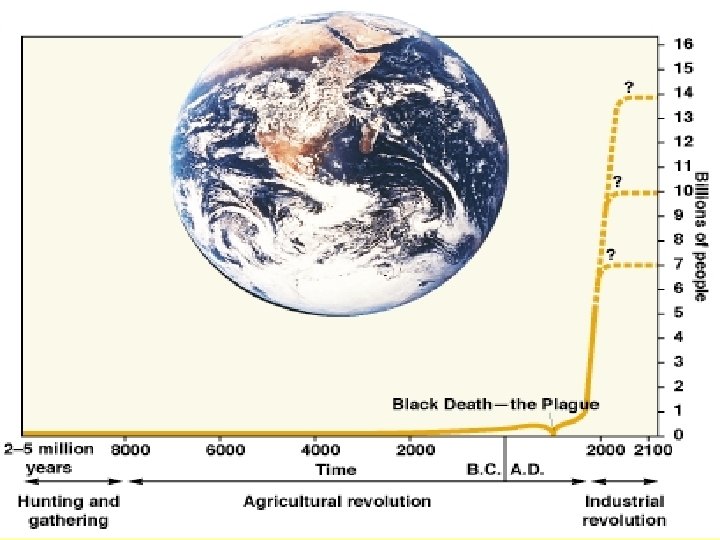 • • • Overall, the world population is growing at a rate of about 1. 7 per cent; if this rate continues, the population will double in 42 years. Unabated, such a rate would lead to a point about 2000 years hence when the mass of humanity would weigh more, and be larger, than the Earth. But, the growth rate is decreasing