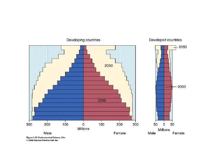 Male Female Male Rapid Growth Guatemala Nigeria Saudi Arabia Ages 0 -14 Pre-reproductive © 2004 Brooks/Cole – Thomson Learning Female Slow Growth United States Australia Canada Ages 15 -44 Reproductive Ages 45 -85+ Post-reproductive
