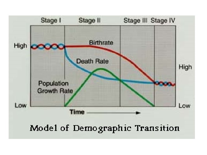 How Does Population Relate to the Economics of a Country? • Demographic Transition – A hypothesis of population change that states as countries become industrialized, first their death rates decrease followed by declines in birth rates. • There are four stages: Pre-industrial, Transitional, Industrial, Post-industrial.