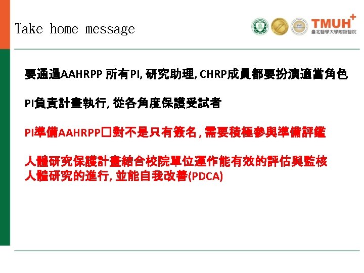 Human Research Protection Program and QI of TMUH