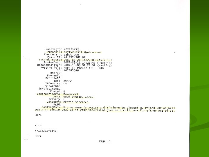 One Day In Iowa (4/13/13) ¡ ¡ ¡ ¡ ¡ 200+ advertised escort services 140 advertised massage services / parlors 127 known adult entertainment services / businesses 14 Major Truck Stops 3 major commercial bus lines Amtrak 200+ private transportation and taxi companies Hundreds of hotels/motels All can be used to facilitate trafficking